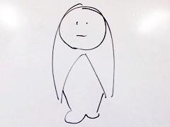 1年生の授業で「アルプスの少女ハイジ」を観て、画面の構成や演出方法等を説明した。その際ホワイトボードに描いたハイジ。適当過ぎる。