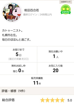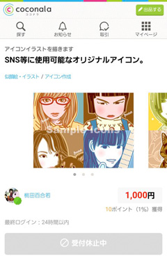 「ココナラ」人気ランキング「アイコン作成」8位だった。