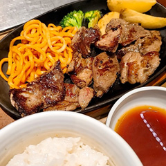 お昼はやよい軒のビーフ&ポークカットステーキ定食。とても美味しくてお腹いっぱい。