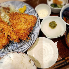 一口ひれかつ定食にしようと入店しつつ、テーブルにあったメニュー見たら食べたくなったので、あさがお定食。お腹いっぱい。美味しかった。
