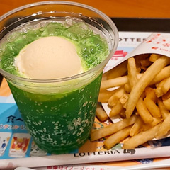 ロッテリアでクリームソーダとポテト。