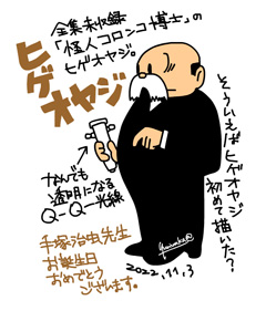 ヒゲオヤジをたぶん初めて描いてみた。元にした漫画「怪人コロンコ博士」は、全集未収録作品。1947年(昭和22年)作。この頃の線がシンプルで好きだ。