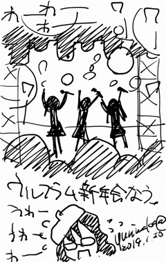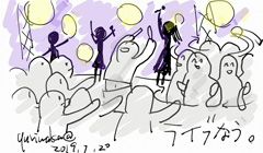 ライブ開始。みんなスマホで写真や動画を撮っていたが、私はスマホでラクガキ。