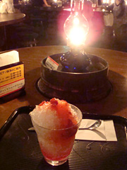 とっても雰囲気のあるカフェの中で、イチゴかき氷を喰う。
